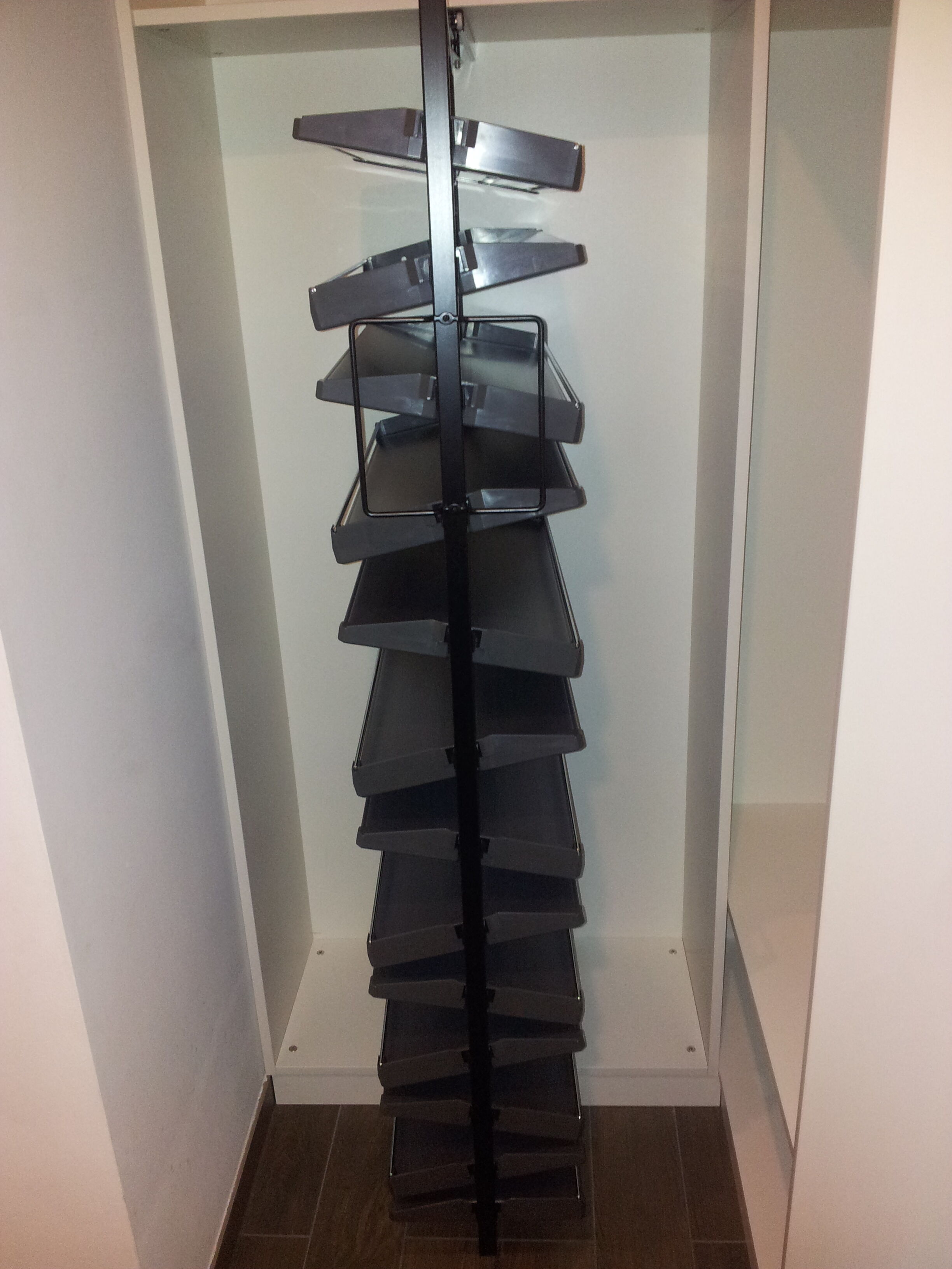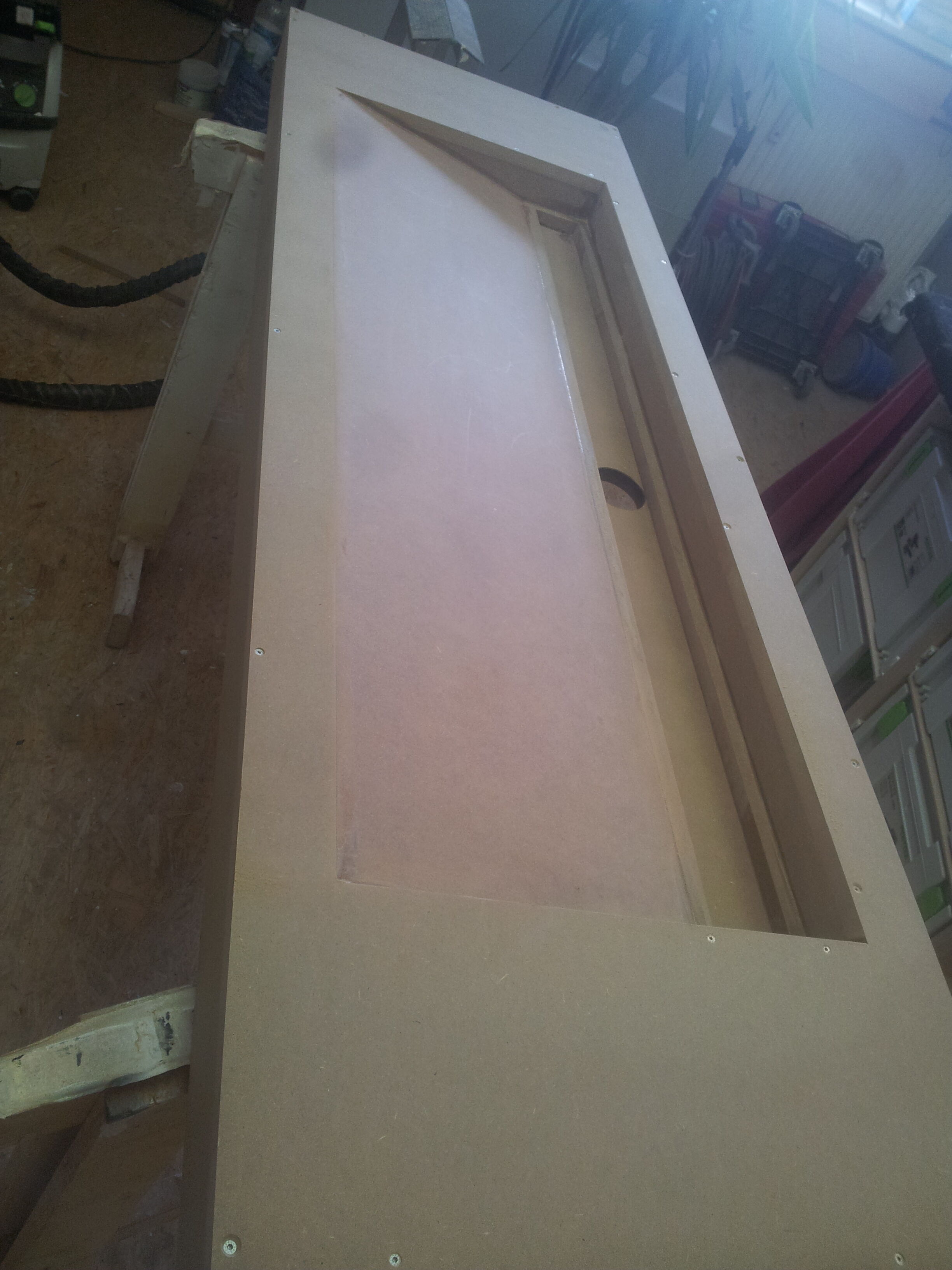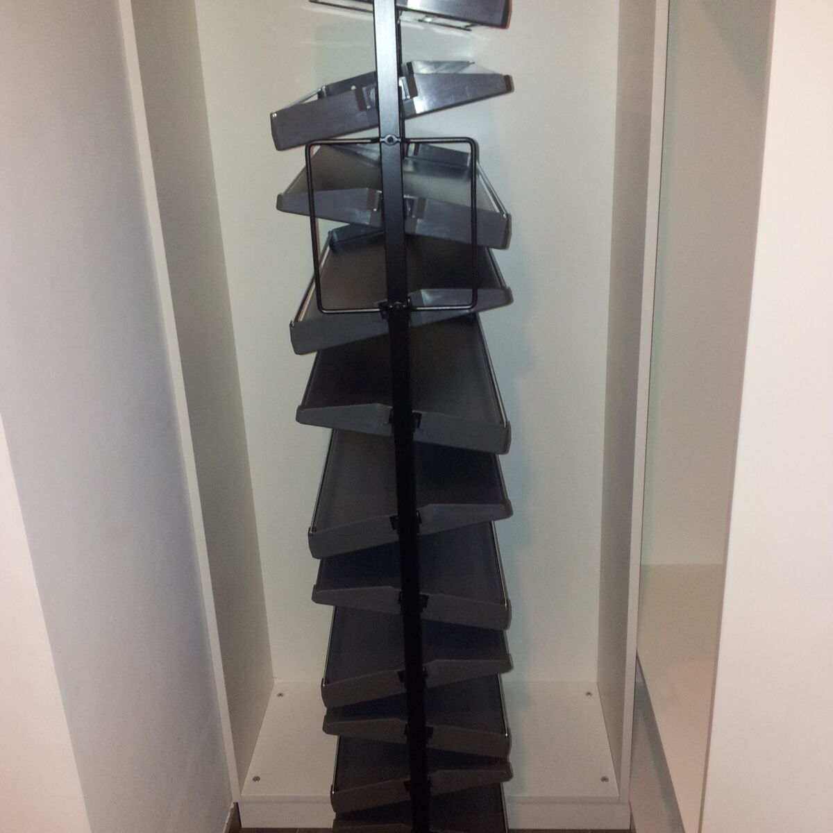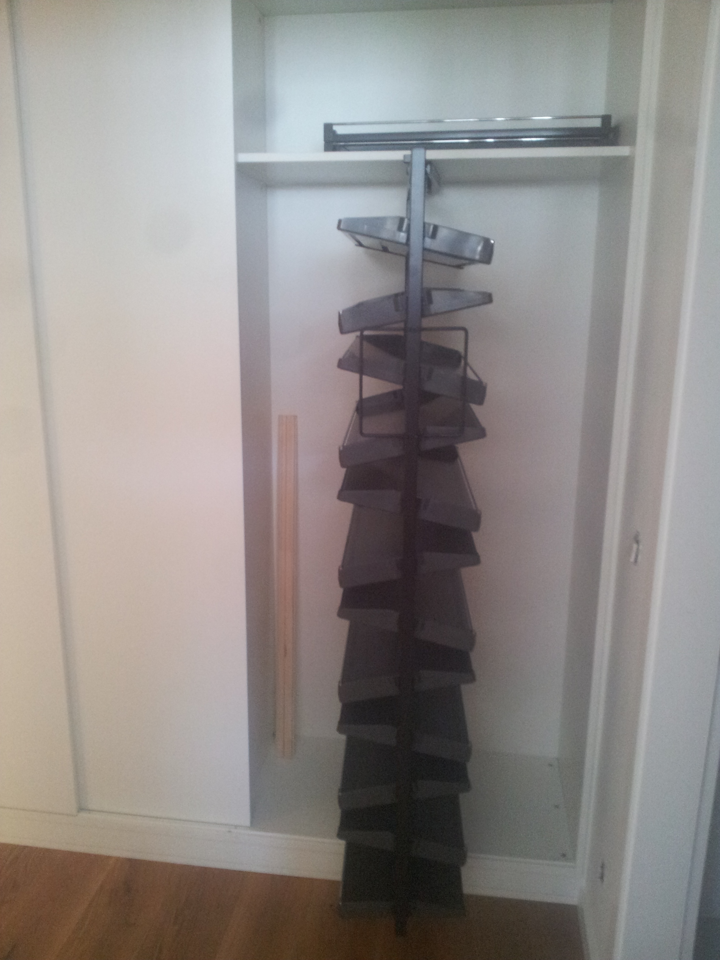 Für die Helix werden 24 bzw. 34 Holzrahmen gefertigt. Diese werden gebohrt und anschließend geschliffen. Nach der Oberflächenbehandlung werden die Rahmen mit den gewünschten Abstandhaltern in die gewundene Form gebracht.