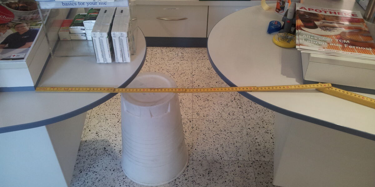 Aus der Nähe betrachtet nicht erkennbar, nimmt das Bild mit jeden Schritt Abstand an Schärfe zu.