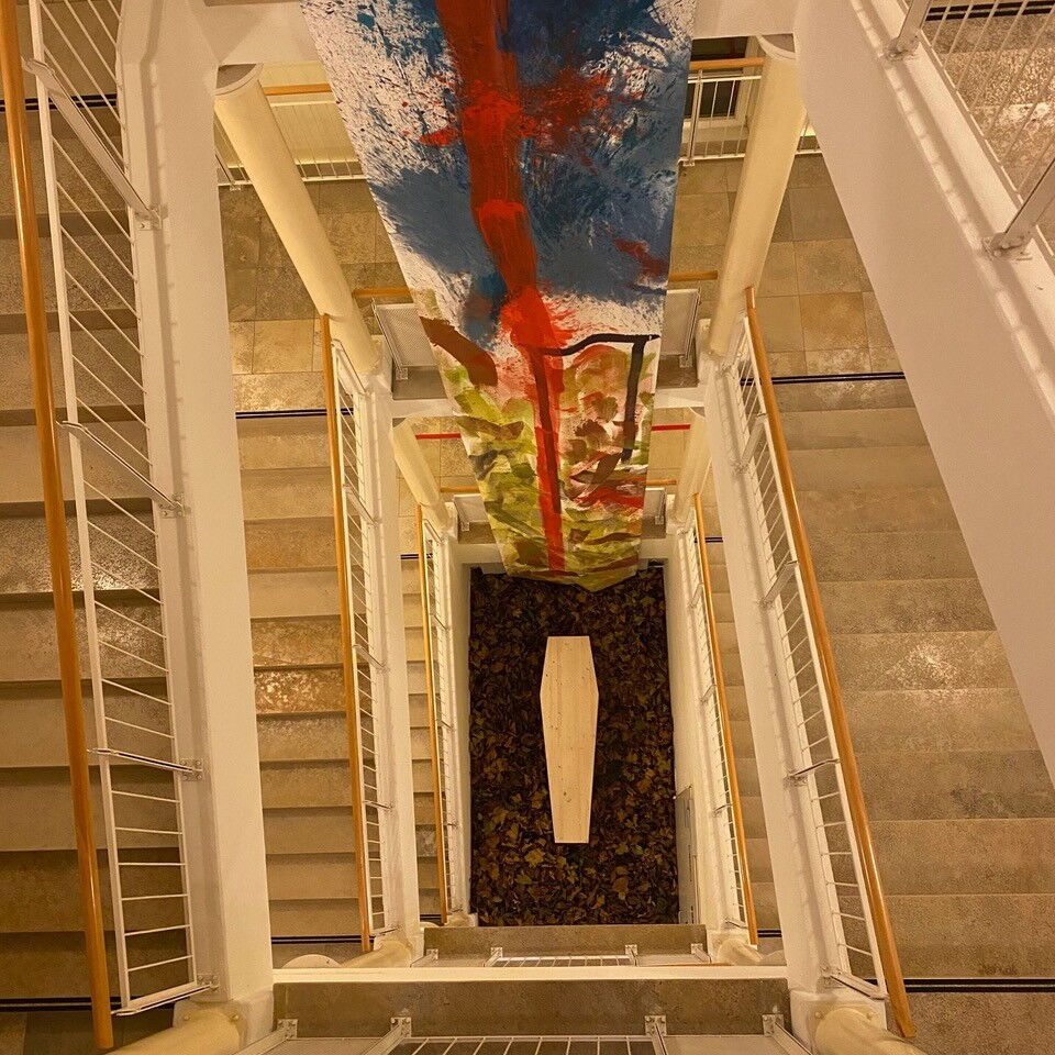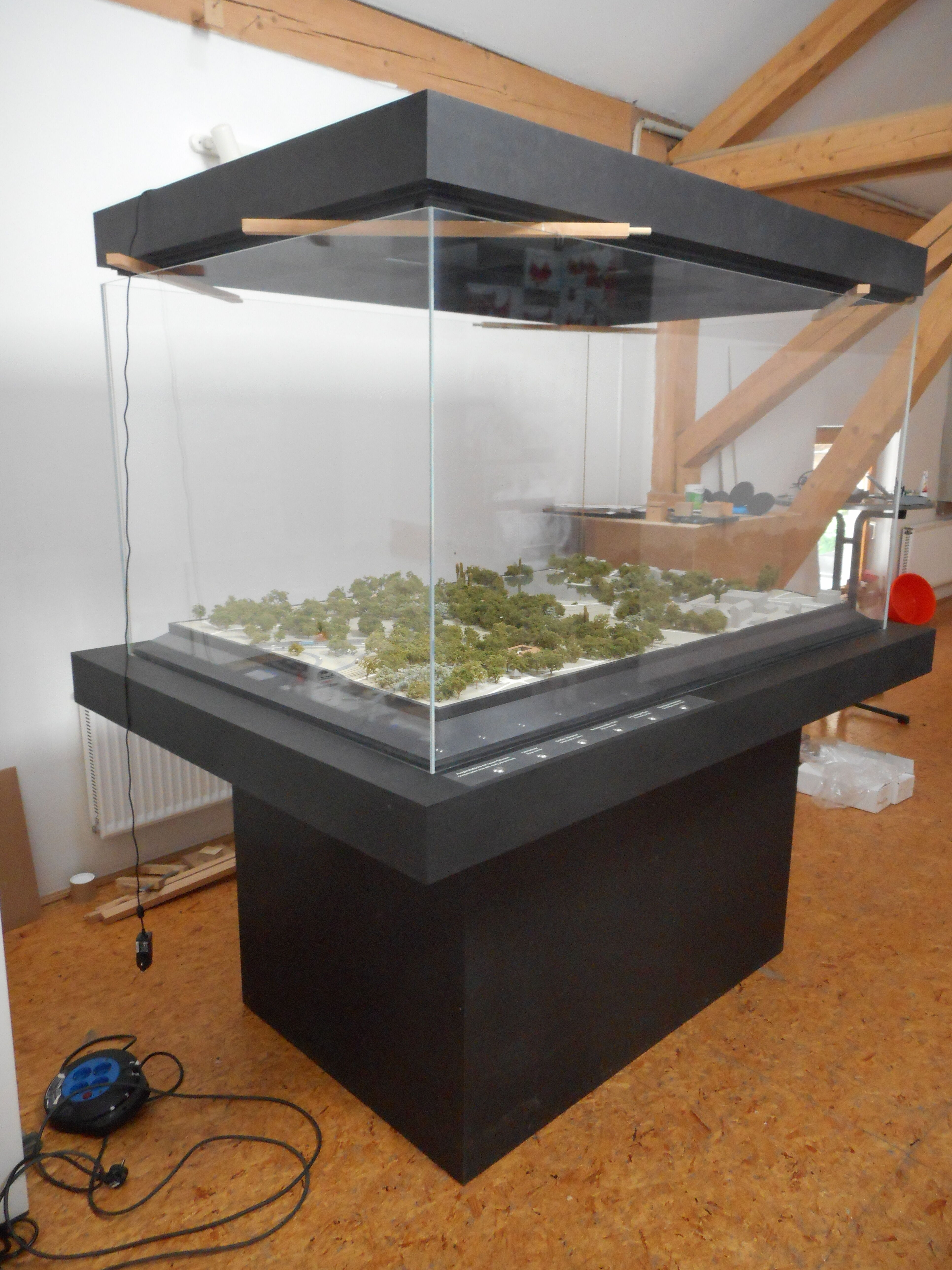 Die 89 Einzelwürfel des Cube werden nach dem Zuschnitt gleichmäßig in klarem Harz vergossen.