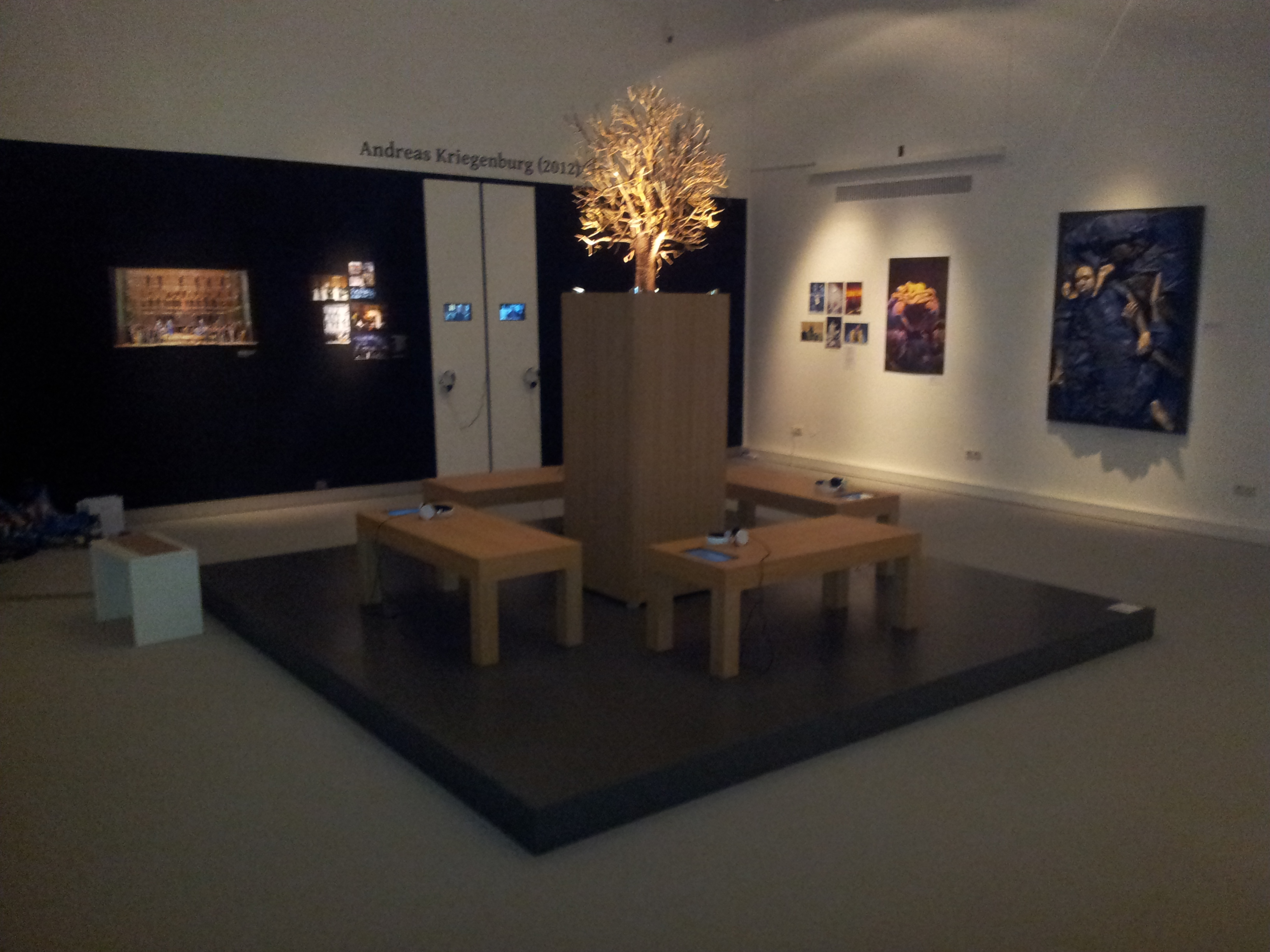 Die Wandbilder werden aus etwa 1100 Holzlamellen hergestellt.