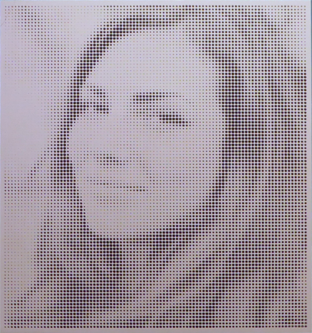 2023 habe ich eine Möglichkeit gefunden Fotos in Pixelpunkte zu übersetzen. Durch die unterschiedlich großen Punkte entstehen die verschiedenen Grautöne.